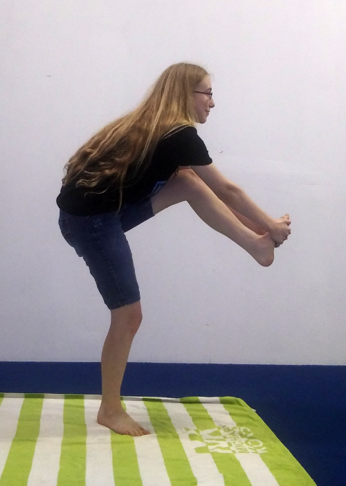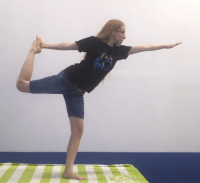 We practice for about an hour, typically doing two sets of each pose, holding for 30 seconds for each pose. We start with some warm up exercises tailored to the students’ problems, and then do some standing poses, followed by floor poses. New students are encouraged to modify their pose to make it easy to do, working up to the full pose as they improve. In particular, some of the balance poses may be difficult at first. So may some of the stretches.